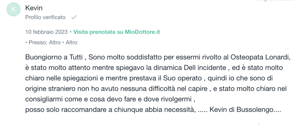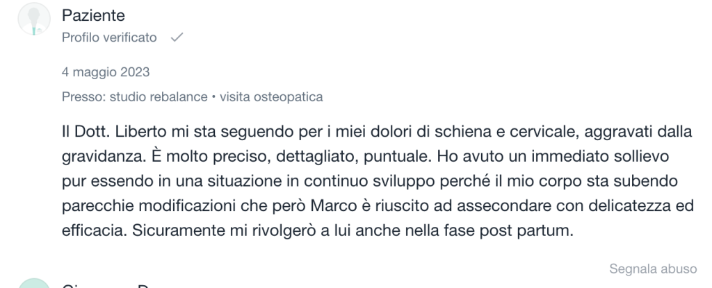 Il mio trattamento osteopatico si differenzia dagli altri proprio per questa motivazione, non mi concentro sul punto del dolore, ma vado all’origine per poter guarire in maniera definitiva e non avere recidive.